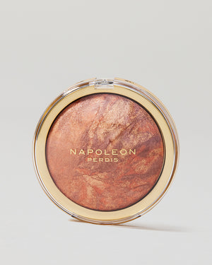 A: Bronze Patrol is a baked bronzing powder that combines multiple tones for a luminous, sunlit finish. It warms up your complexion and gives skin a radiant, healthy glow — no matter the season.