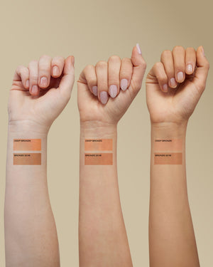Your year-round ticket to that perfect bronze glow. Bronze Patrol is a luxurious bronzing mousse with a lightweight, whipped texture that blends seamlessly into skin to deliver a natural-looking bronze finish that lasts. Infused with illuminating pigments, it enhances your complexion with a luminous, airbrushed effect - perfect for both everyday wear and special occasions when you want that effortless sun-kissed radiance.