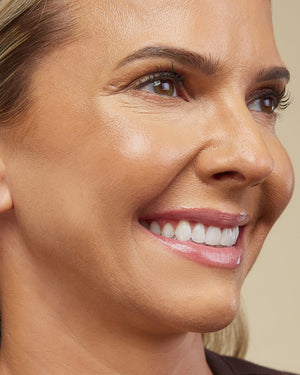 A: This creamy, blendable bronzer stick glides on effortlessly to create a natural, sun-kissed glow. The weightless formula melts into the skin, giving a soft matte finish that looks luminous and real — never flat.