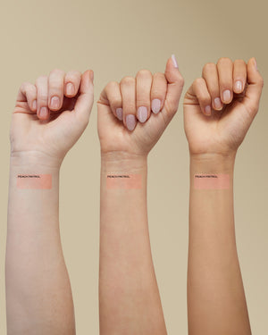 A: Peach Patrol is a radiant, baked blush that blends pink, coral, and golden tones for an instant, healthy-looking glow. It gives your skin a natural pop of colour with a soft, luminous finish.